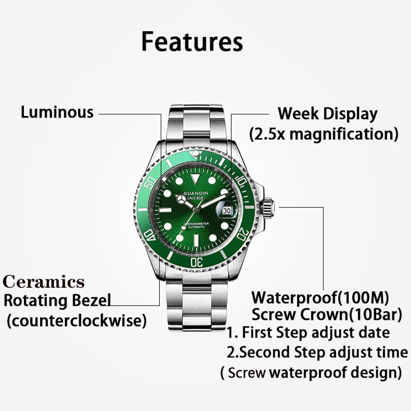 BEST QUALITY GUANQIN Japan Movement mechanical watch men top brand luxury Sapphire 100m waterproof Automatic men