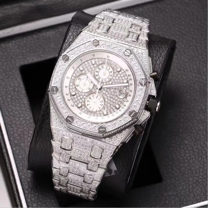 Best Quality Silver iced out Mens diamonds watch super quality iced out quartz watches chronograph function work